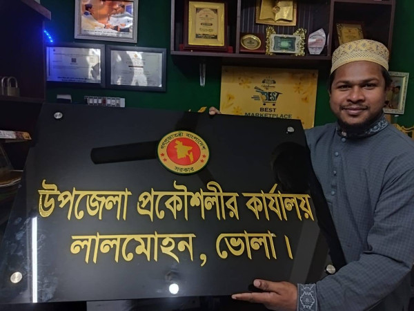 এটি একটি ডেমো পিকচার, এভাবে আপনার প্রতিষ্ঠানের অফিস টেবিলে পিছনে বা দরজার পাশে দেয়ালে রুম নেইম প্লেট বা অন্য কোন, সিস্টেমে চাইলে প্রিন্ট করিয়ে নিতে আপনার প্রয়োজনীয় পরিমান অনুযায়ী অর্ডার করুন এবং যা প্রিন্ট করাতে চান তা আমাদের হোয়াটসঅ্যাপ বা ওয়েবসাইটের ম্যাসেজ অপশনে লিখে / ড্রাফ আকারে ছবি দিন অথবা সরাসরি ফোন কল করে বলুন।